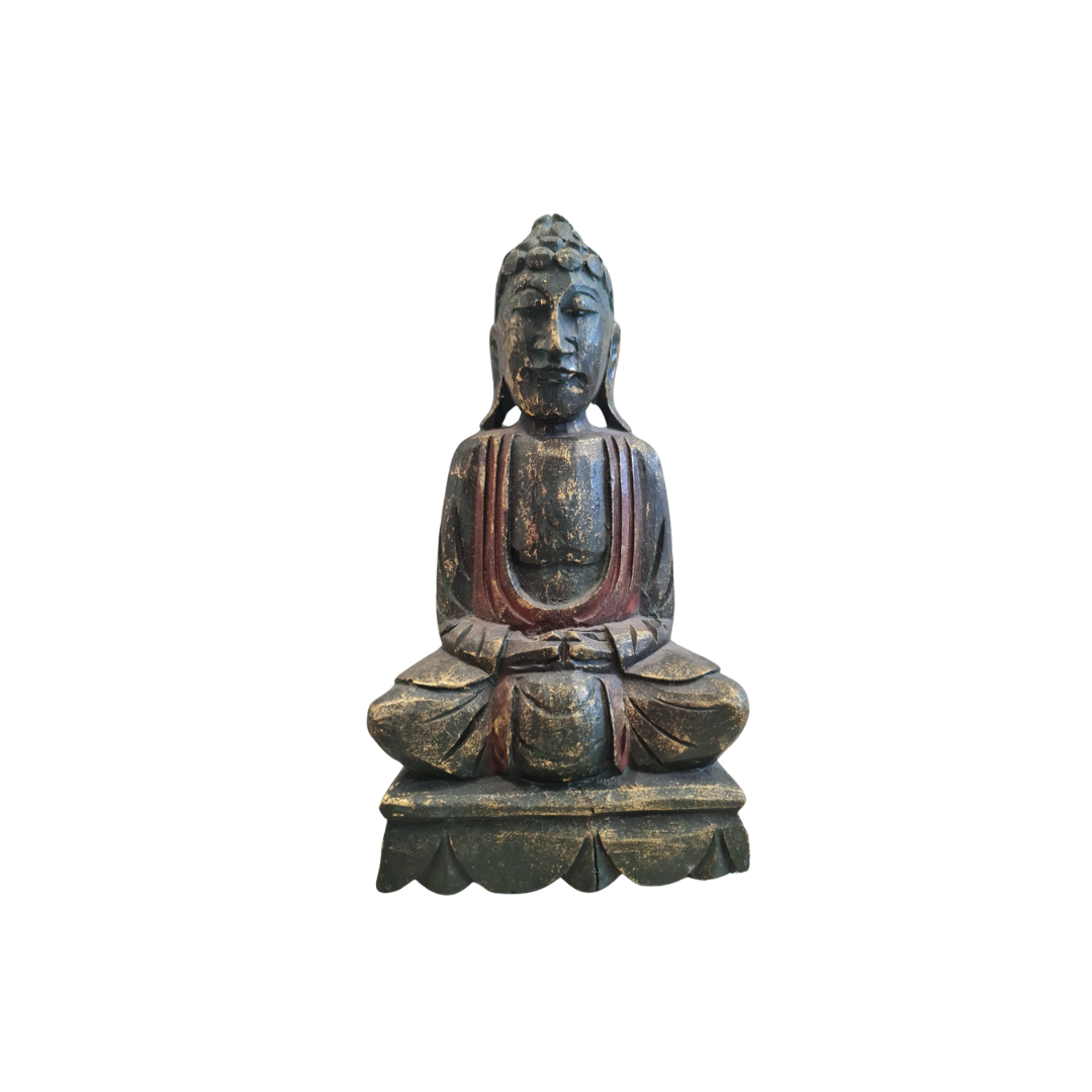 A Buda de madeira é uma representação simbólica do Buda (ou Siddhartha Gautama), o fundador do Budismo, esculpida em madeira. Este tipo de figura é muito apreciado por sua simplicidade, energia de paz e calma espiritual que ela transmite. Além disso, a madeira, como material natural, adiciona um toque acolhedor e terroso ao ambiente.